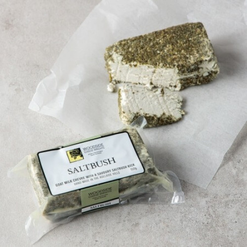This delicate Woodside chevre is lightly rolled in local the saltbush flakes – fabulous on your cheese board.